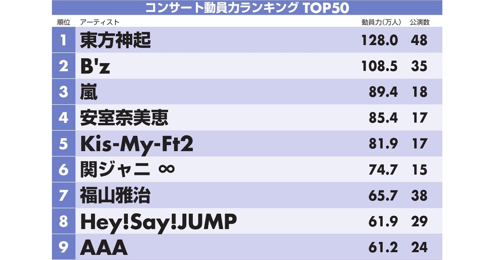 コンサート動員力 1位は東方神起 女性は安室奈美恵 エンタメ Nikkei Style