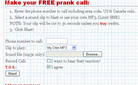 Prank Calls Make funny phone pranks with a prank call scenario. Both are classics of the early Web, even if this. The best role to play during a prank call is that of a psychotic lover on the loose.