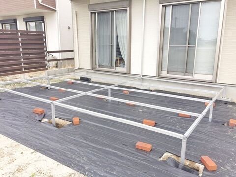 Diy ウッドデッキで釘 ノコギリ不要 アルミフレームでウッドデッキを自作 暮らしニスタ