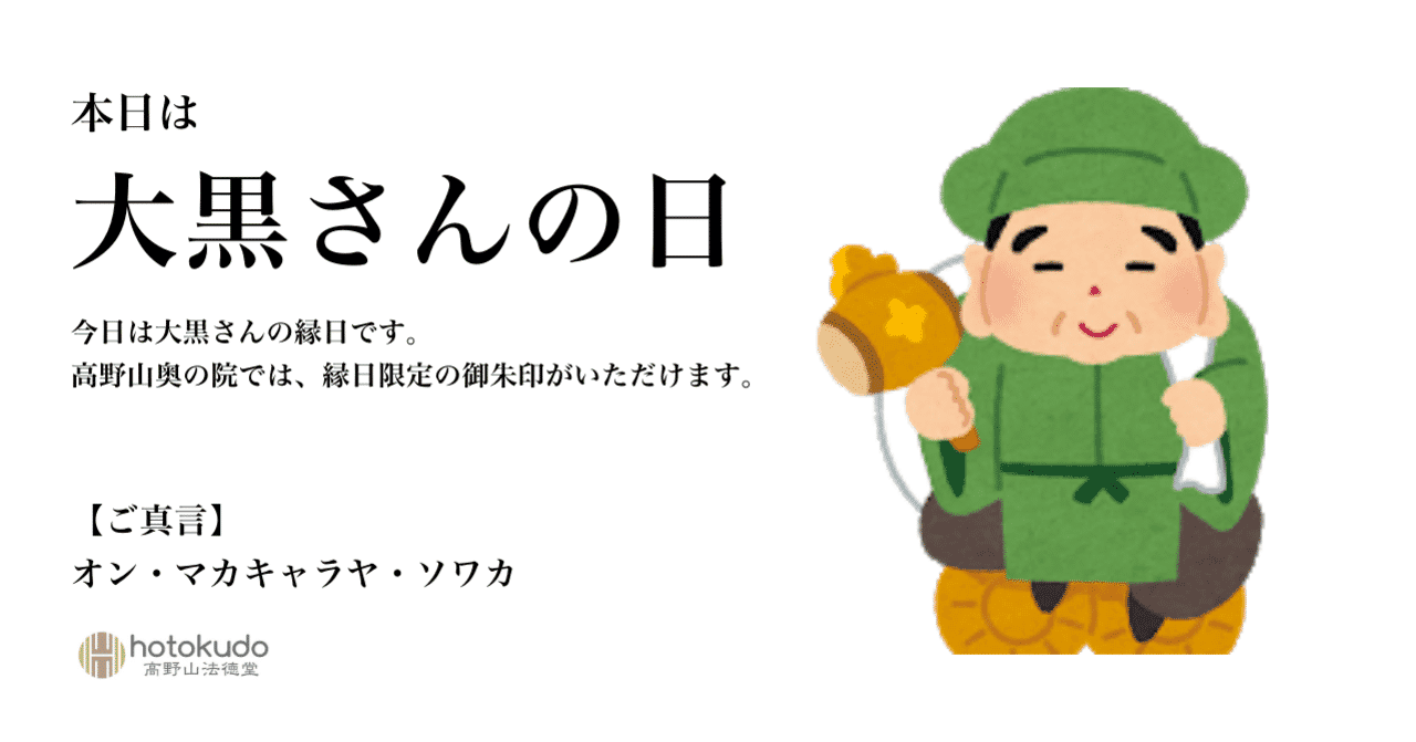 今日は大黒さん 大黒天 の日です 高野山法徳堂 空海と高野山の魅力を独自の視点で伝えています Note
